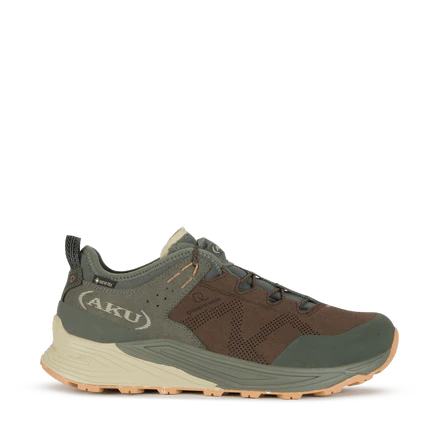 Buty korzystają z innowacyjnej, biodynamicznej konstrukcji AKU Elica Natural Stride System, która wspiera naturalny ruch stopy i poprawia efektywność kroków na każdym podłożu. Podeszwa z mieszanki częściowo recyklingowanej gumy posiada asymetryczny bieżnik dający pewny krok na szlaku, miejskich chodnikach czy leśnych ścieżkach.